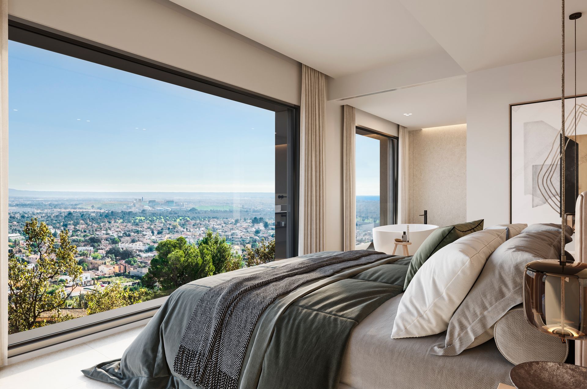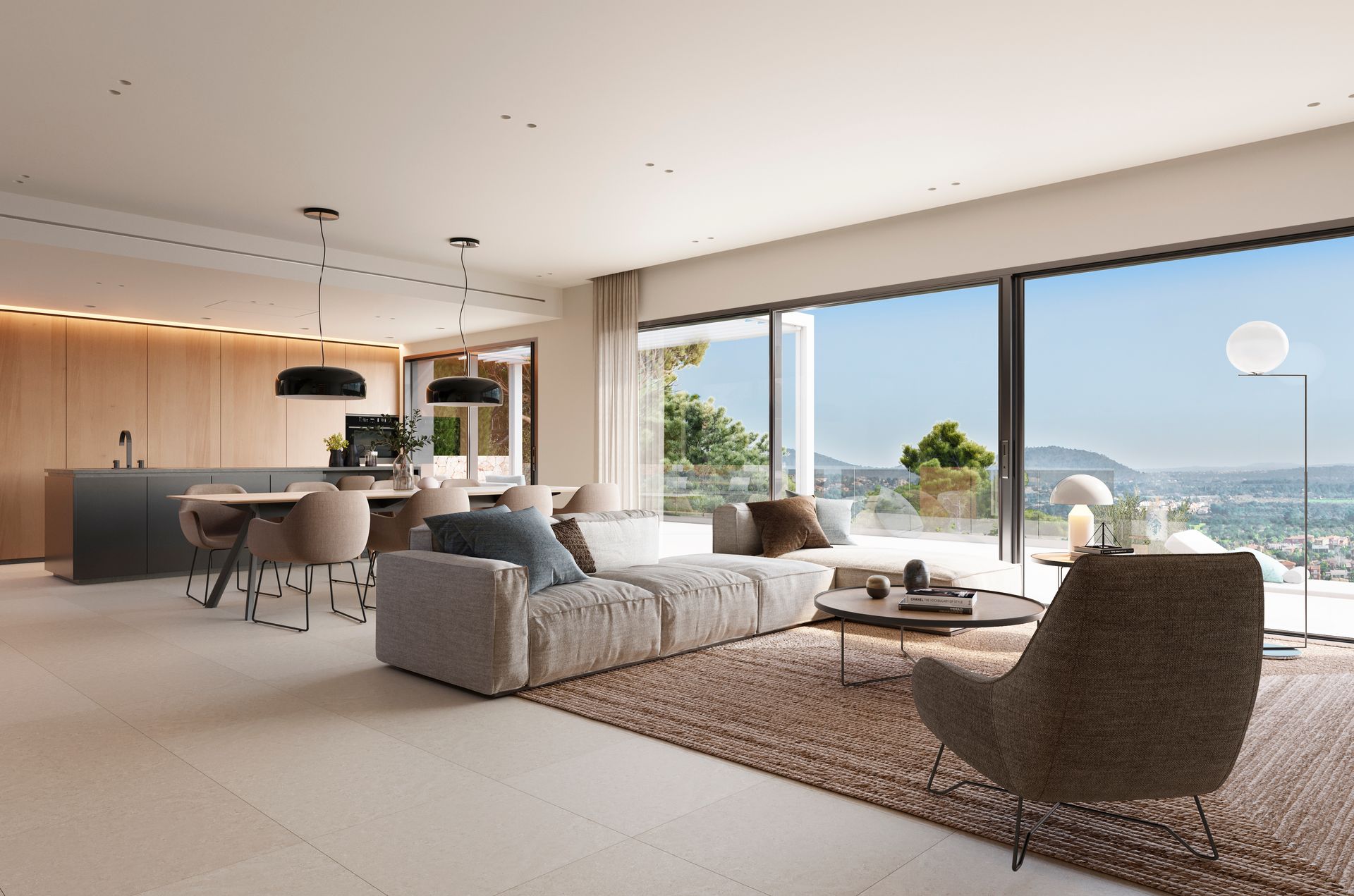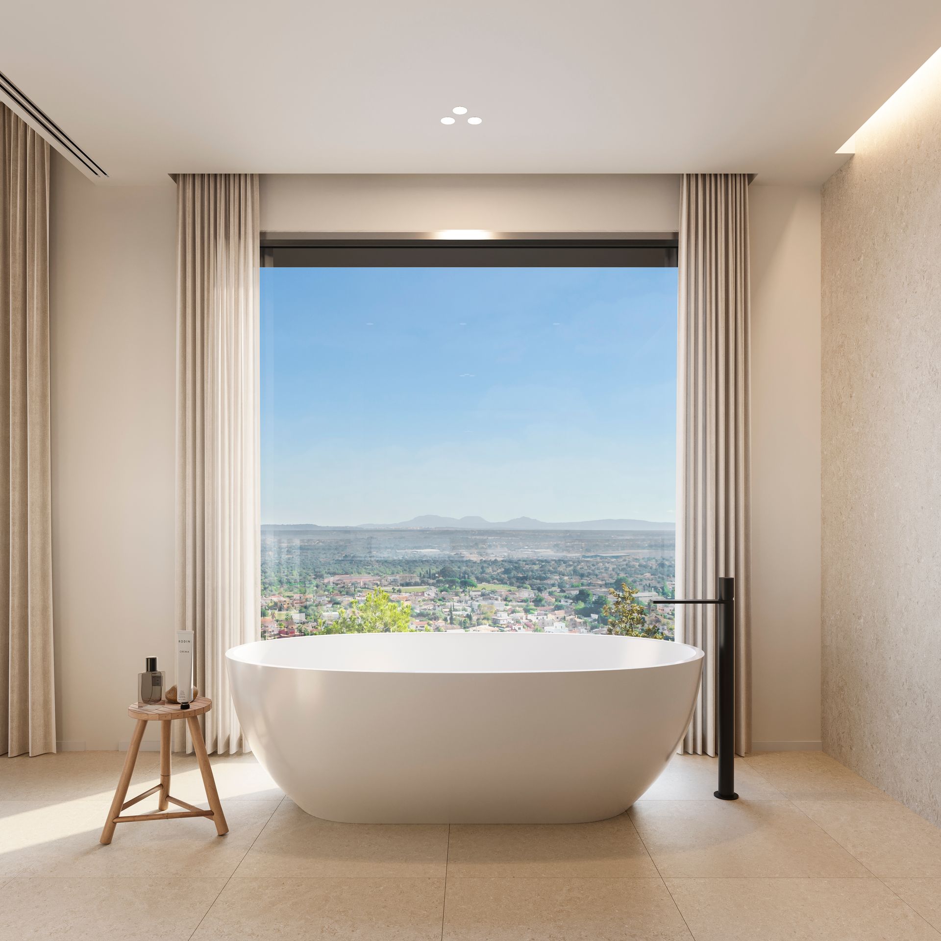 This single-family home is located in the Sa Font Seca urbanization, in the municipality of Bunyola in Mallorca. The house rises on a promontory from where you can see the entire city of Palma and its bay, as well as a large part of the center of the island of Mallorca. The plot has a very steep slope to the southeast and the views. Our architects decide to place the house in the highest part of the plot, to dominate the landscape. The house is organized longitudinally, parallel to the unevenness. The lower floor is half buried in the ground due to the slope.