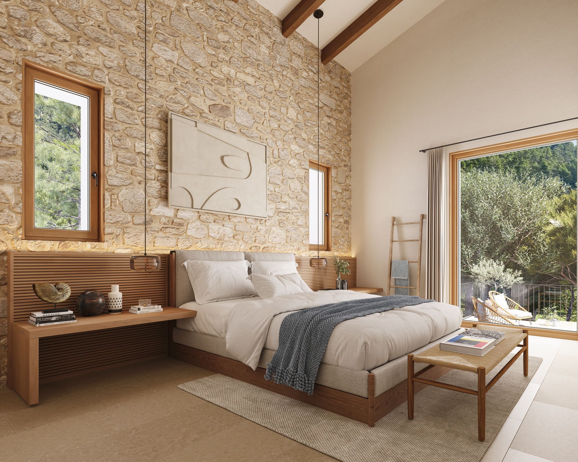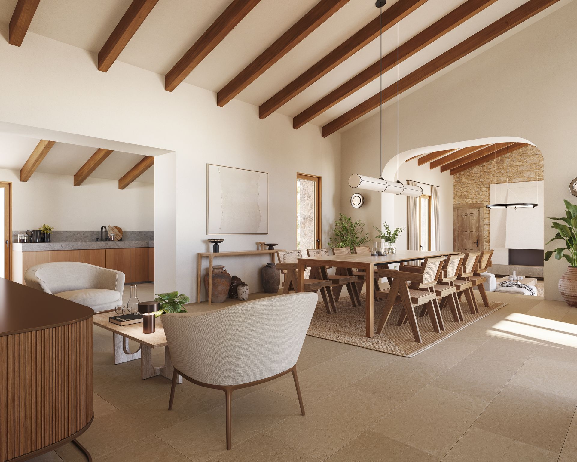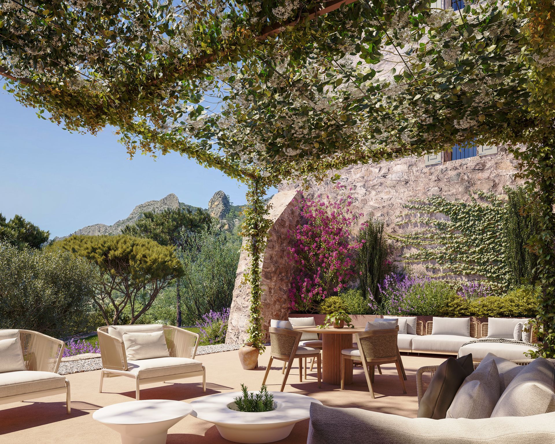 Interior courtyards introduce greenery and freshness. Every detail is woven into the story of Ses Cases Velles de Son Palouet, honoring the souls that have inhabited this land.
