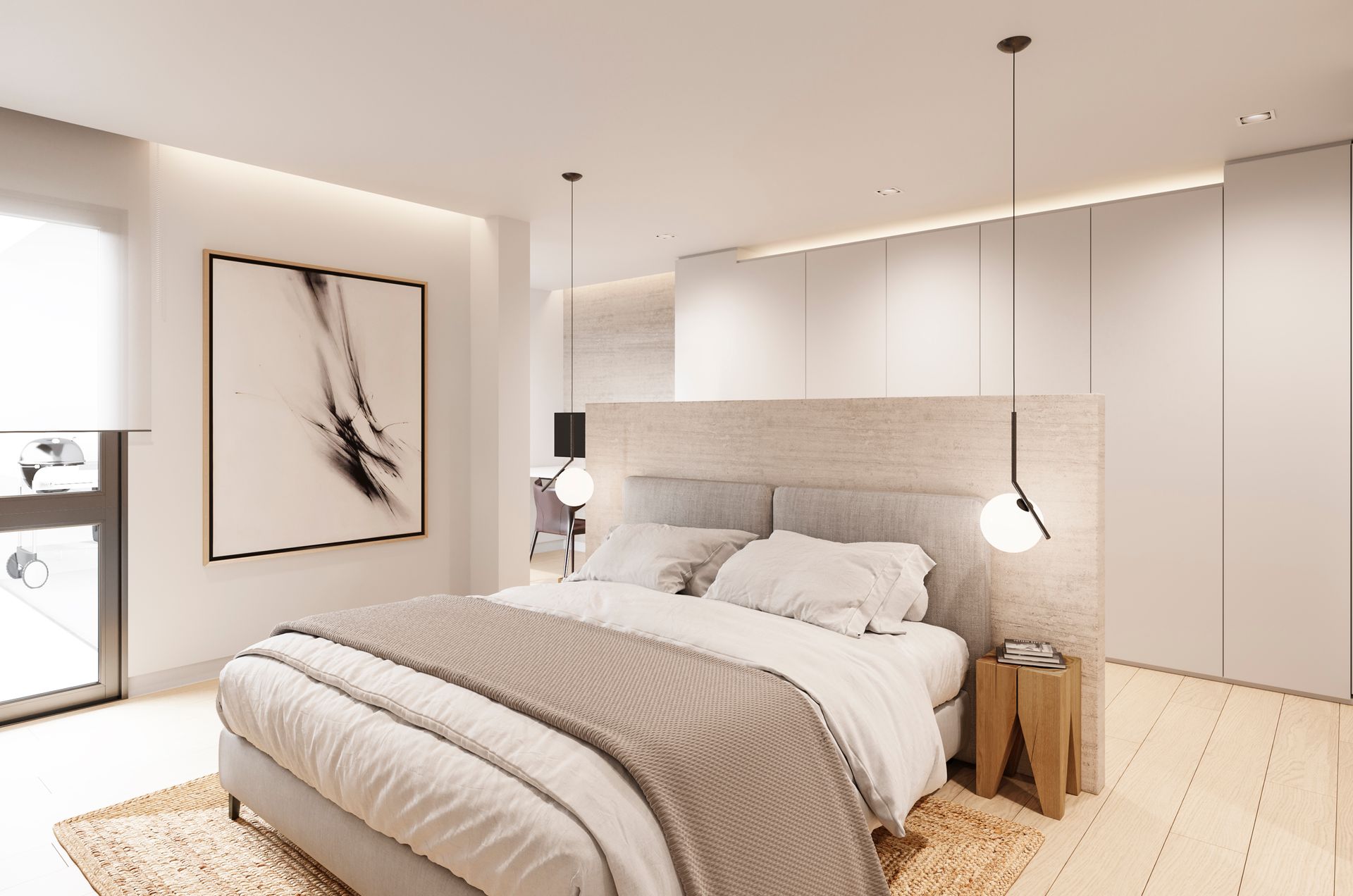 Nuestros arquitectos redistribuyen la zona de las habitaciones donde el dormitorio secundario se sitúa en la fachada y el principal en la fachada opuesta para obtener una total tranquilidad durante el descanso.